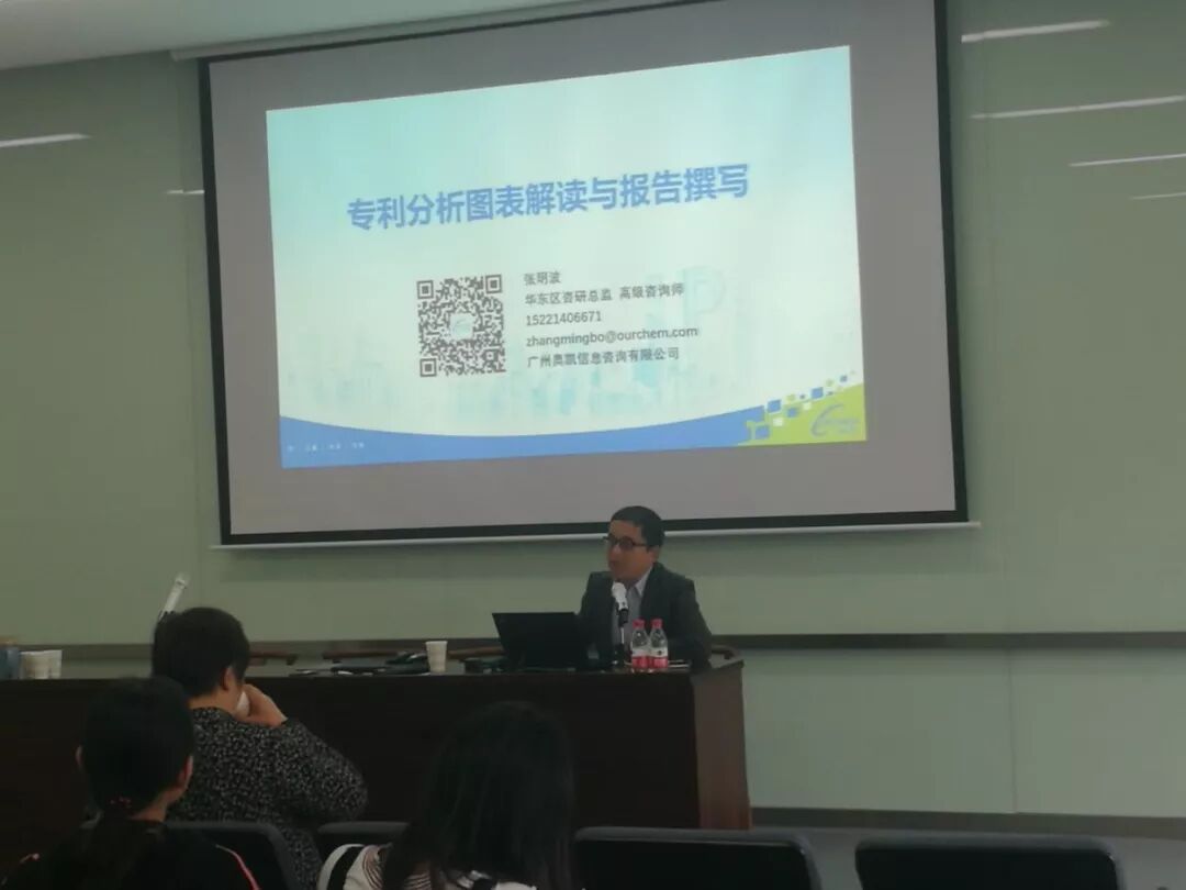培训课上,张明波先生就“专利分析图表解读与报告撰写”进行主题演讲,从专利分析的基础到专利分析可视化与图表解读,详细介绍了发明人、组织机构以及产业技术专利分析报告撰写的思路与技巧,并通过经典实践案例解读分享了专利分析报告撰写的经验与心得。